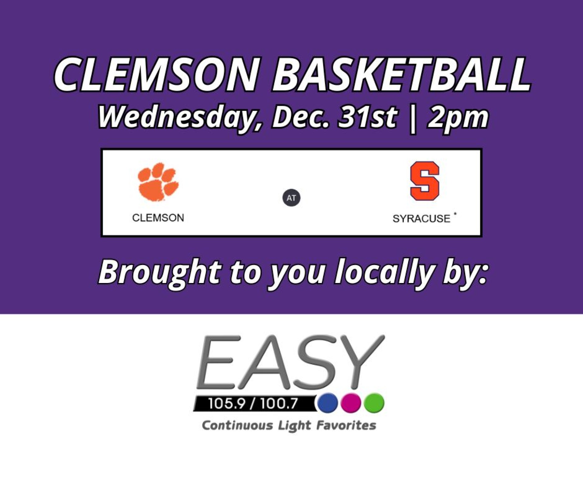 Join EASY Radio for more action from the Clemson men's basketball team on New Year's Eve!