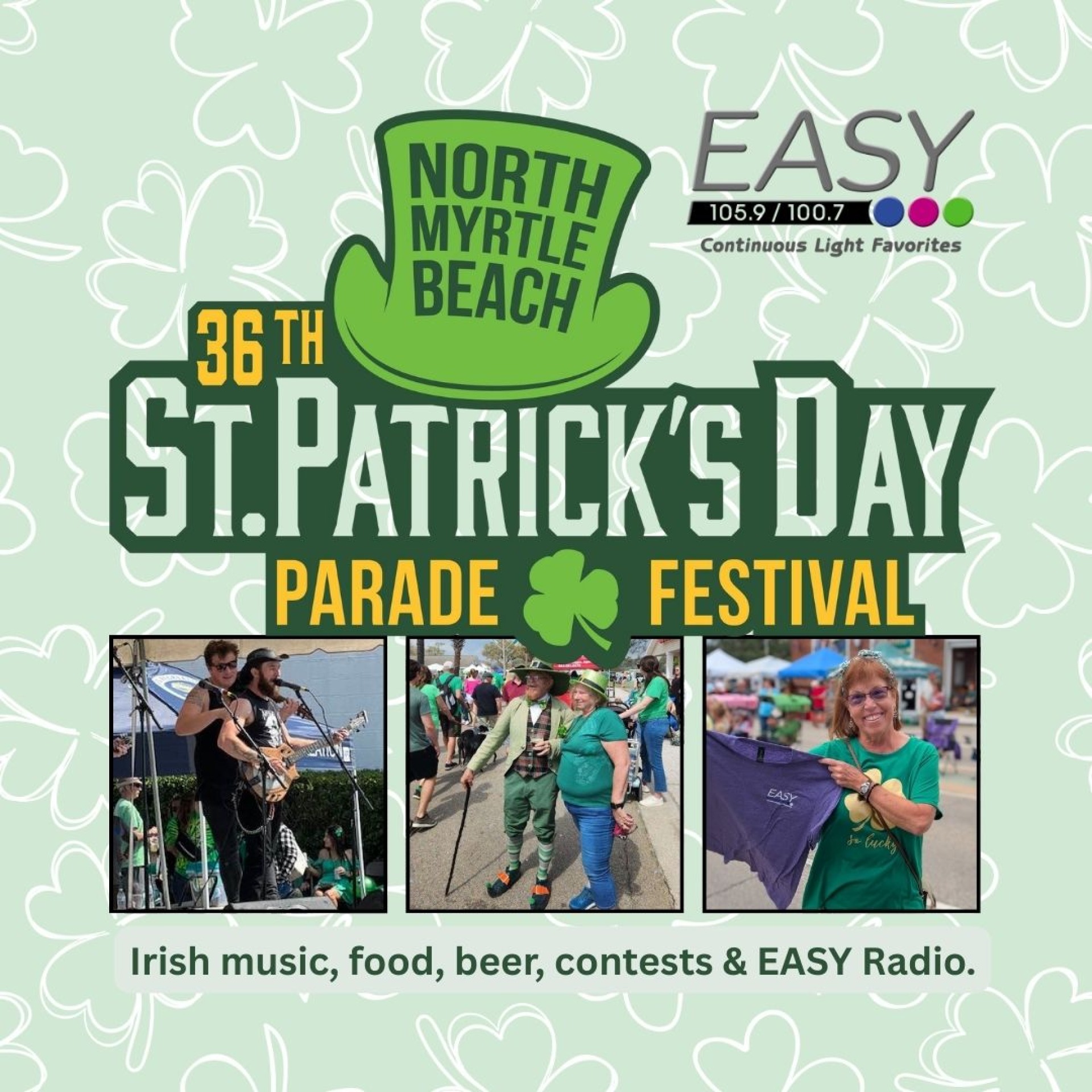 Join EASY Radio for the 36th Annual North Myrtle Beach St. Patrick's Day Parade & Festival on Main Street Saturday, March 14th.