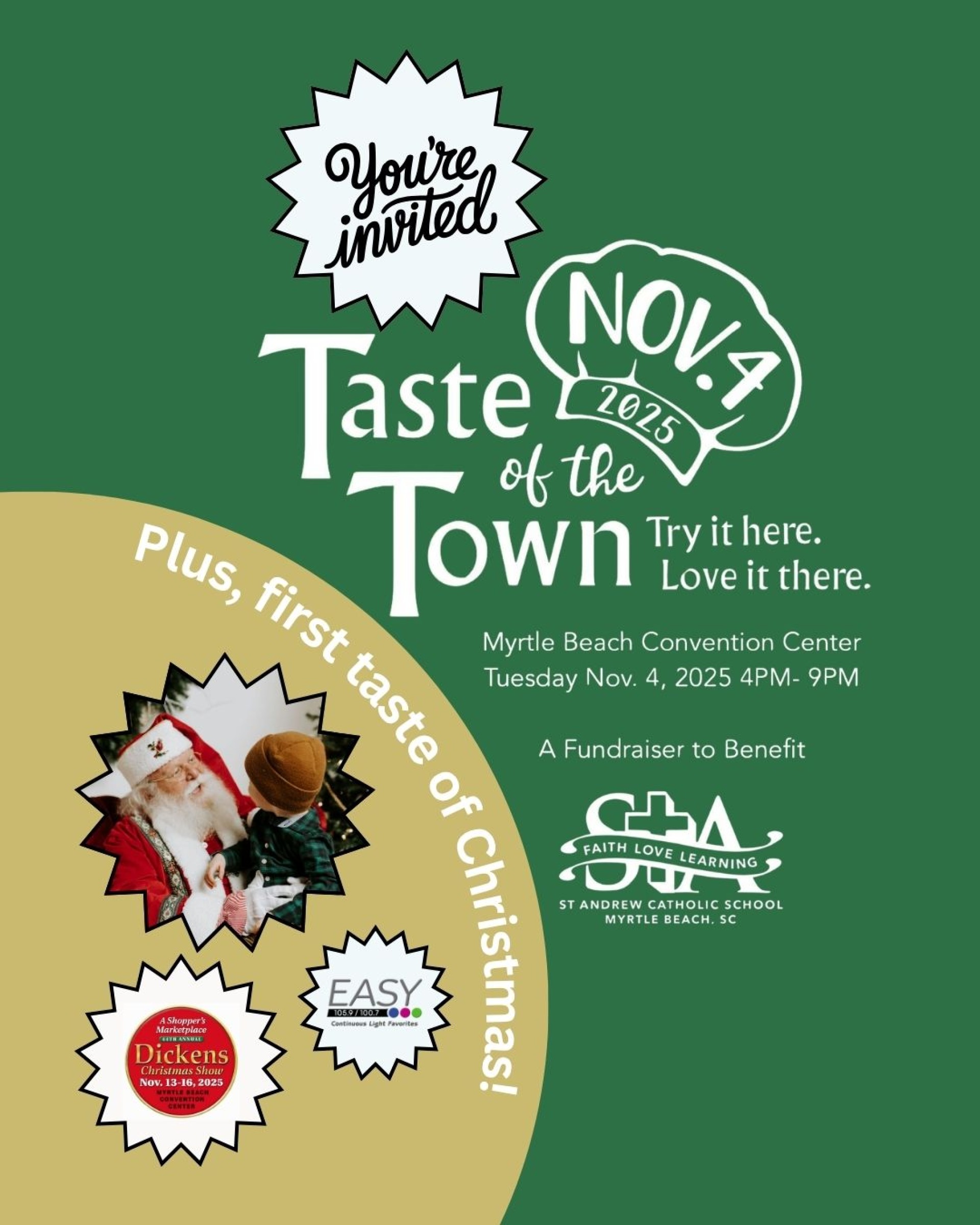 Taste of the Town, benefitting St. Andrew Catholic School, returns to the Myrtle Beach Convention Center on Tuesday, November 4th from 4pm to 9pm.