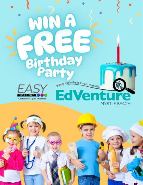 By registering, you agree to share your contact information with EASY 105.9 & 100.7 and Edventure Myrtle Beach for promotional use. By uploading a picture of your child, you give permission to use their image on EASY 105.9 & 100.7 and EdVenture Myrtle Beach social media for this giveaway only. If chosen, you must provide three dates to claim prize. Blackout dates apply. Subject to availablity. Rules and regulations apply.